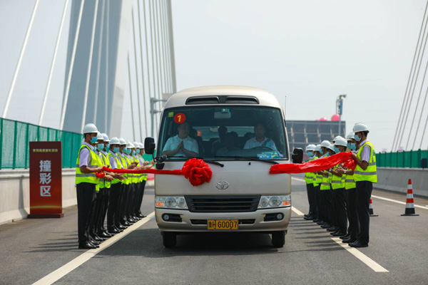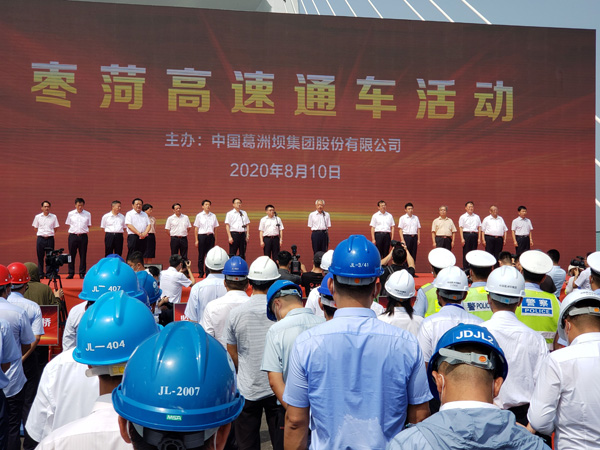 經(jīng)過近三年半的緊張工作,終于迎來了本項目最重要的時刻,2020年8月8月,項目公司中國葛洲壩集團股份有限公司組織各參建單位、省市有關(guān)單位領(lǐng)導(dǎo)成功召開了交工驗收大會,對本項目的執(zhí)行情況進行了全方位的驗收,并通過了交工驗收執(zhí)行報告。2020年8月10日上午10時23分,在本項目微山湖特大橋現(xiàn)場舉行了盛大的通車典禮,副省長凌文、交通運輸廳廳廳長江成、副廳長王其峰等省廳領(lǐng)導(dǎo)對本項目的工作給予的充分肯定,并宣布棗菏高速公路正式通車,現(xiàn)場響起了久久的掌聲和歡呼聲,那一刻所有人臉上洋溢著開心的笑容,見證了這一歷史時刻。