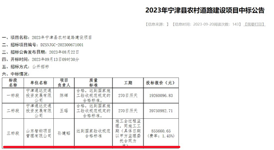 近日,智鈞項管公司連續(xù)中標2023年寧津縣城建計劃道路項目與2023年寧津縣農(nóng)村道路建設項目。