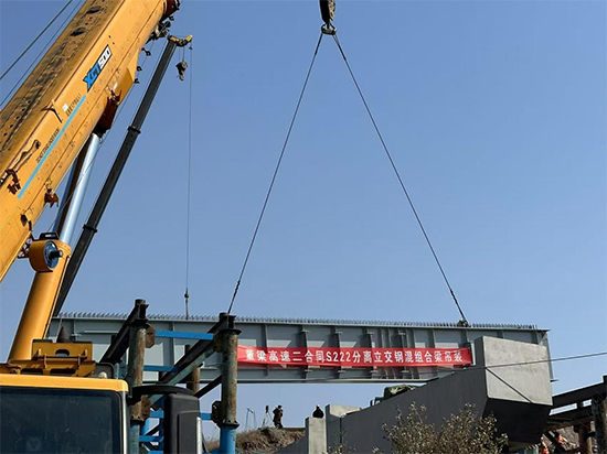 董梁項(xiàng)目S222分離立交首片鋼混組合梁吊裝完成