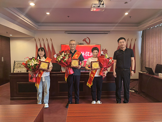 會上,孫奉軍同志為3名退休職工逐一頒發(fā)退休紀念章和鮮花,并合影留念。